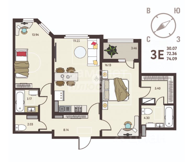 74,09 м²