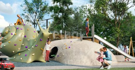 Широкие и тщательно спланированные тротуары и подъездные пути, зеленые зоны и паркинг (подземный и наземный), а также современные детские и спортивные площадки, оборудованные всем необходимым. Придомовая территория с продуманным ландшафтным дизайном . Территория ЖК 18.000 м2, как 5 футбольных полей.