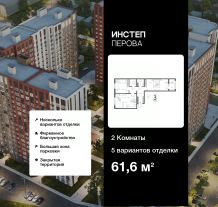 2-комн. квартира в ЖК "Инстеп.Перова" на 16 этаже. Квартира без отделки, новый собственник может сделать ремонт по индивидуальному дизайн-проекту. Общая площадь: 61.6 кв.м., жилая: 26.62 кв.м., площадь просторной кухни-столовой: 19.54 кв.м. Квартира - распашонка, без проходных комнат, окна выходят на paзные стороны дома. В квартире один балкон, один раздельный санузел. Высота потолков 2.64 м.