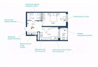 Практичная планировка (просторная кухня-гостиная, функциональная лоджия)