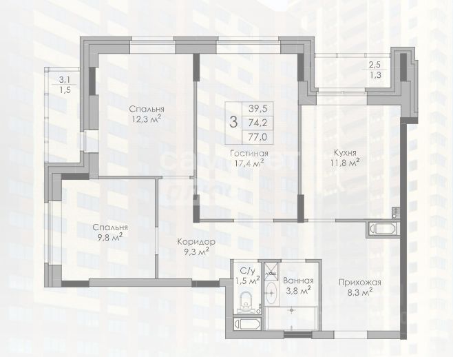 39,5 м²