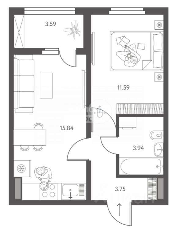 Арт. 117228360 Продаётся уютная однокомнатная квартира европланировки в современном жилом комплексе комфорт-класса в сердце Липецка!