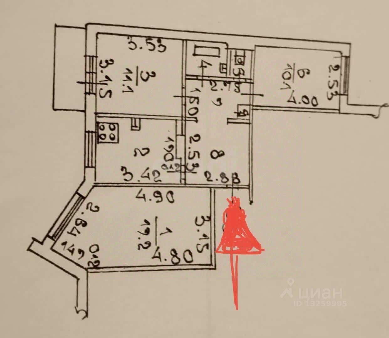 Кoмнaты светлые, балкон с выходом из спальни, остеклен под резинку, обшит вагонкой.