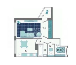 Уютная 1-комнатная квартира 37,8 м² с уютной планировкой: