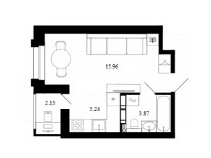 Жилая площадь 15.96 м, ниша под зону кухни 5.24 м с выходом на просторную лоджию 2.15 м, совмещенный санузел. Сдается в улучшенной черновой отделке - стены выровнены под маяк, на полу залита стяжка, электрика разведена, установлены выключатели, розетки и корзины под кондиционеры. Высота потолков 2.8 метров. Панорамное остекление много света и воздуха.
