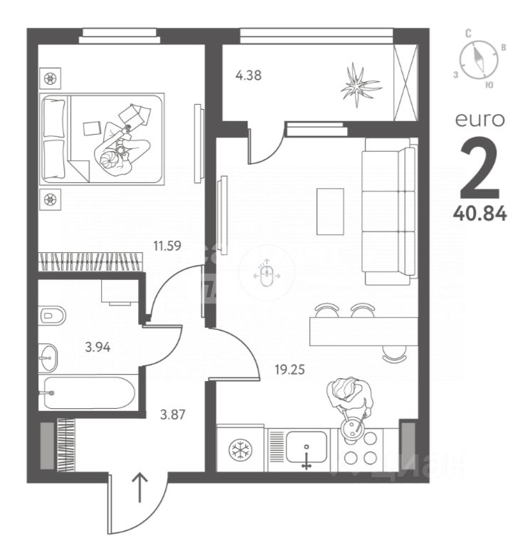 40,84 м²