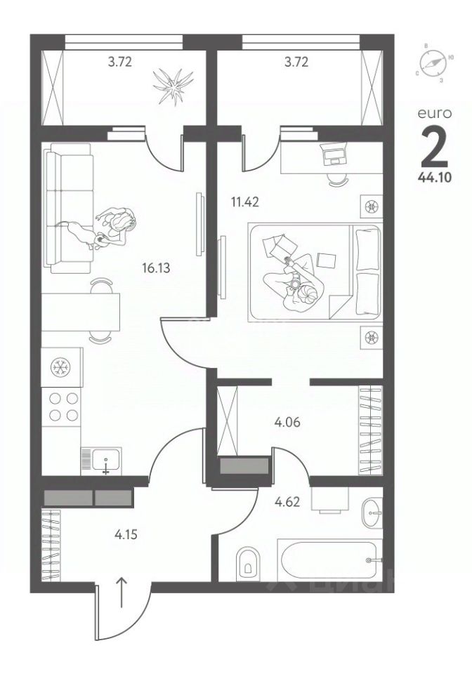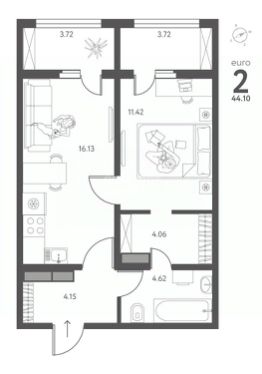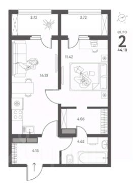 Общая площадь 44.1 м2