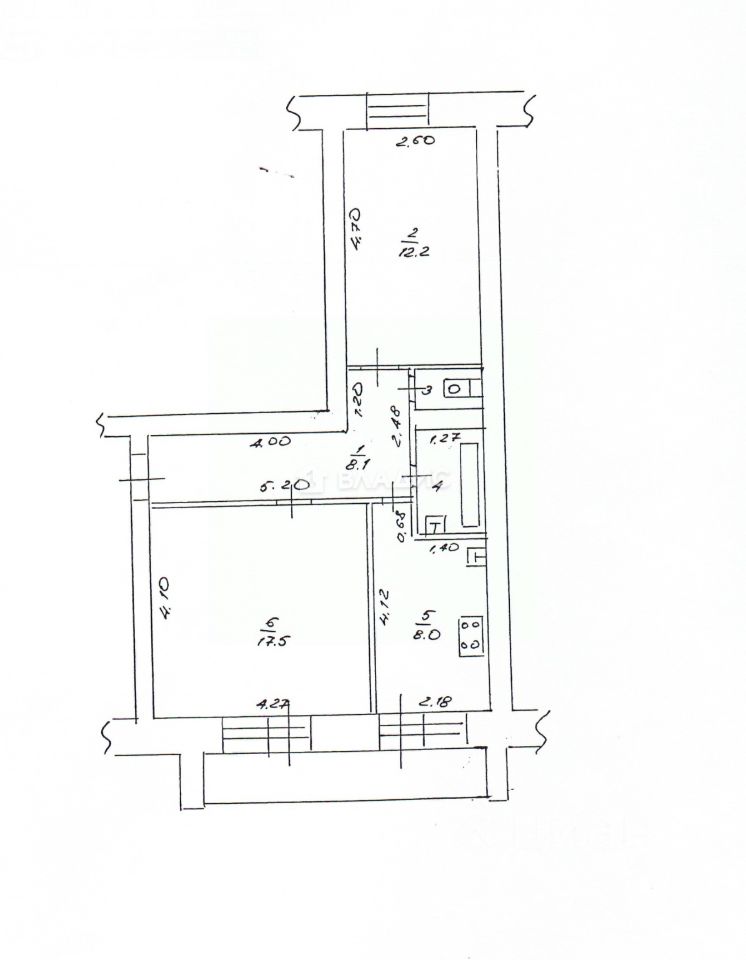 Квартира расположена на втором этаже трёхэтажного кирпичного дома. Из окон открывается вид на улицу и во двор. Общая площадь квартиры составляет 49,7 кв. м, из которых 29,7 кв. м — жилая площадь. Две изолированные комнаты (17,5 кв. м и 12,2 кв. м) обеспечивают комфортное размещение. Высота потолков 2,65 м создаёт ощущение простора.
