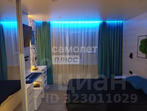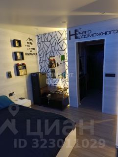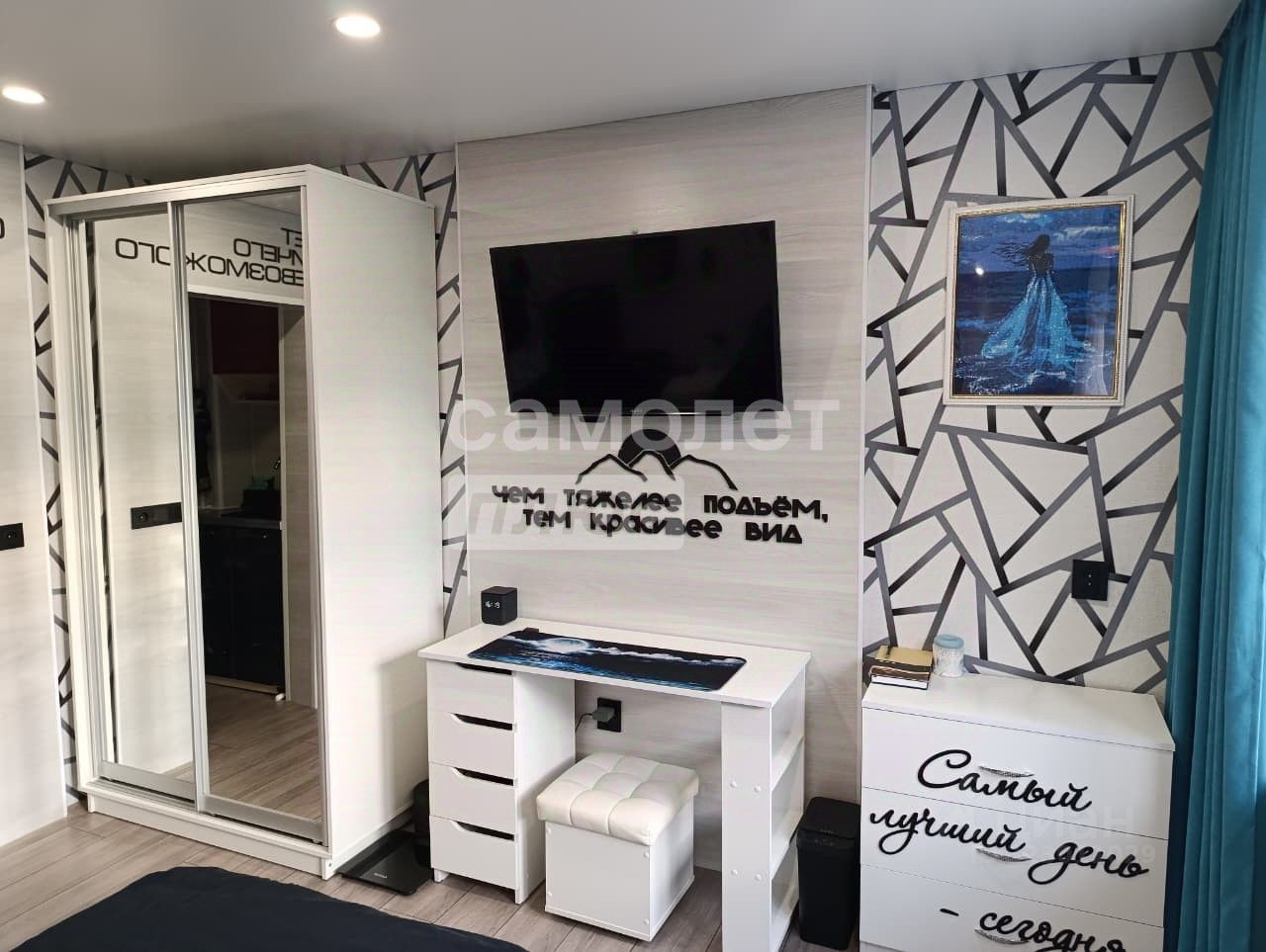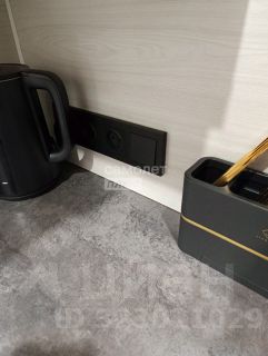 В комнате установлены проходные выключатели на основной свет и подсветку зоны ТВ, что в свою очередь позволяет включать и выключать свет при входе в комнату, а также лежа на кровати. Дополнительно установлена скрытая подсветка в карнизе,которую можно регулировать по цветам и яркости с помощью пульта. В дополнение установлена скрытая подсветка в проходе с кухни в комнату. В комнате установлено 7 розеток.