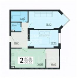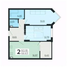 Общая площадь квартиры 66,92 м2