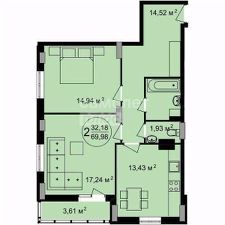 Практичные покрытия: во всех помещениях (коридор, кухня, с/у) уложен керамогранит с подогревом. Порожки отсутствуют.