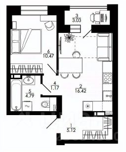 Общая площадь 42.39 м2
