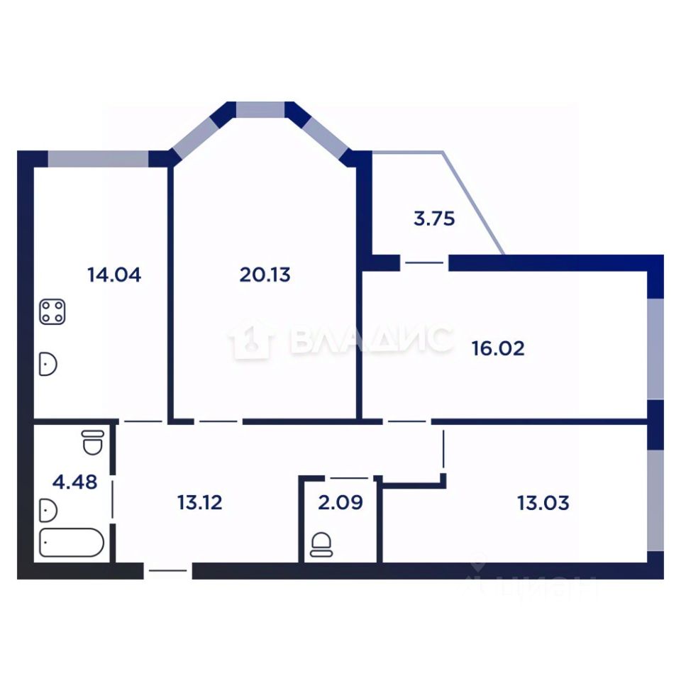 Общая площадь: 84,79 м²