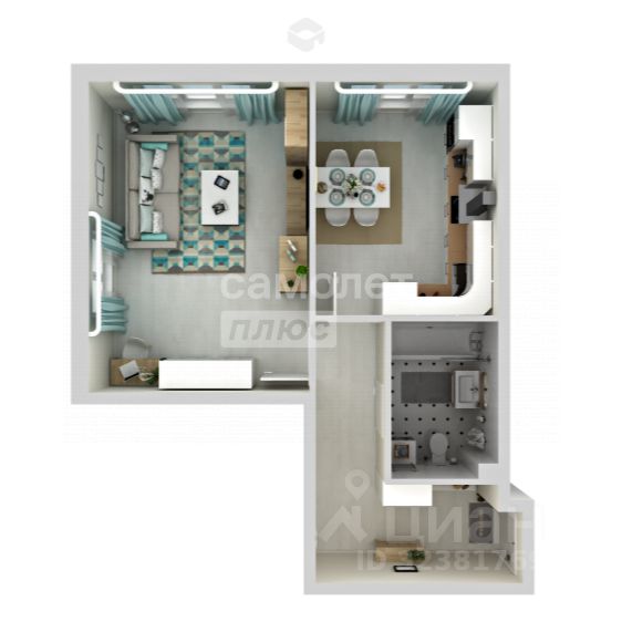 Просторная 1-комнатная квартира 44.4 м² с уютной планировкой: