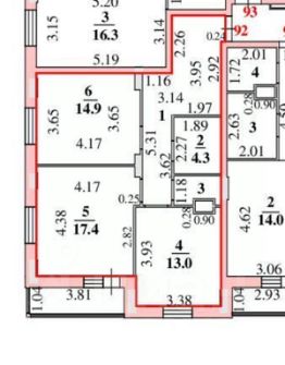 Комнаты — 14,9 и 17,4 м²— уютные, светлые