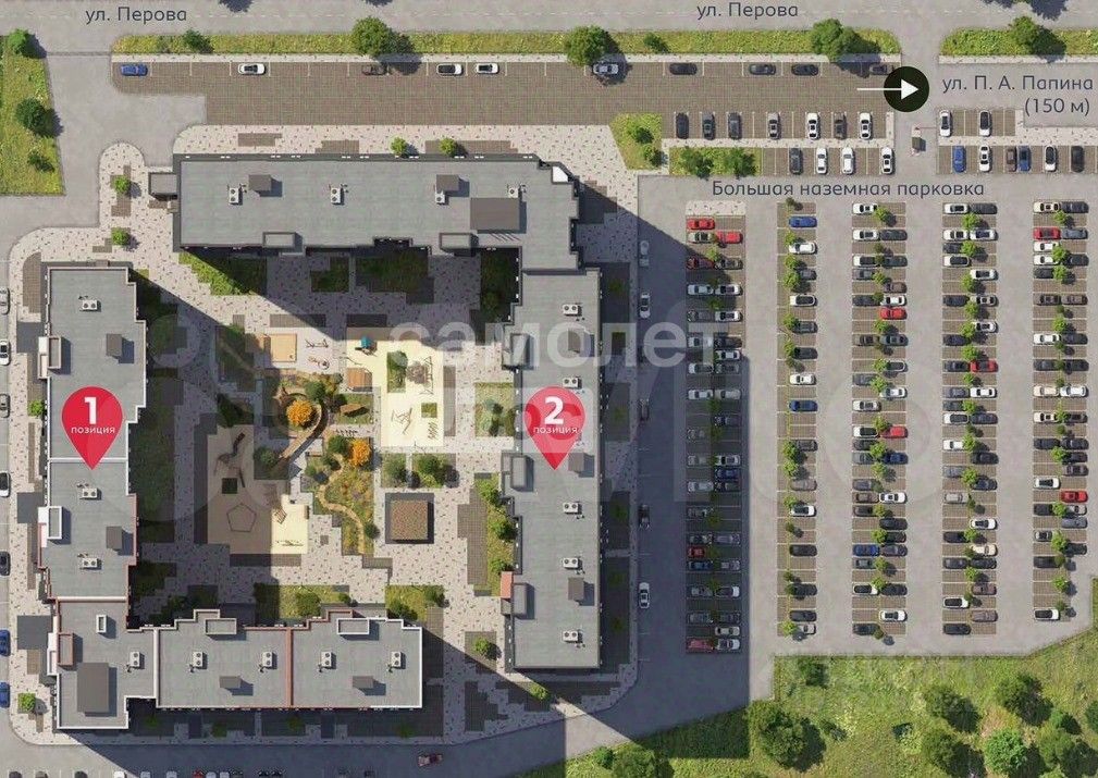 Во второй позиции планируется открытие коммерческих помещений на первых этажах для дополнительного удобства жителей.