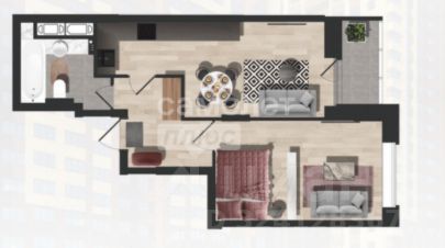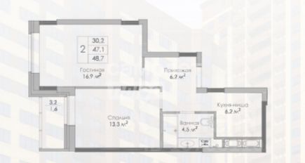 • Общая площадь: 48.7 м²