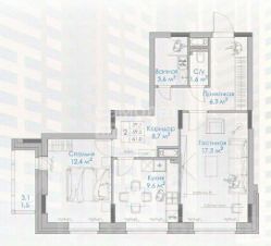 Жилые комнаты 17.3+12.4 м2