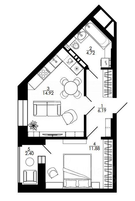 Общая площадь 41.74 м2