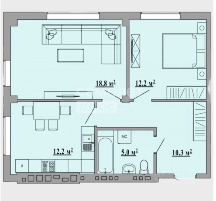 Площадь: 60,1 м²
