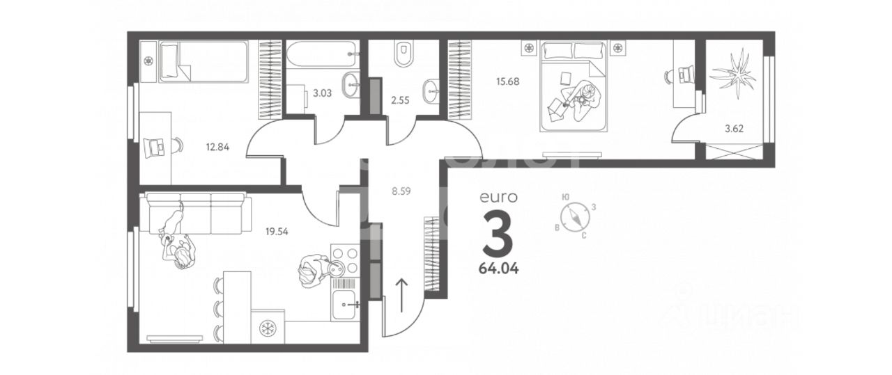 Арт. 126247691 Предлагается к продаже 3 комнатная квартира евроформата.