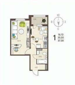 Общая площадь: 37,1 кв.м.