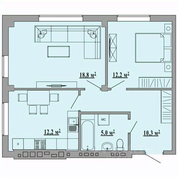 2-комн. квартира, 60,6 м²