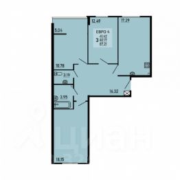 Трехкомнатная квартира 87.21 кв.м. от застройщика