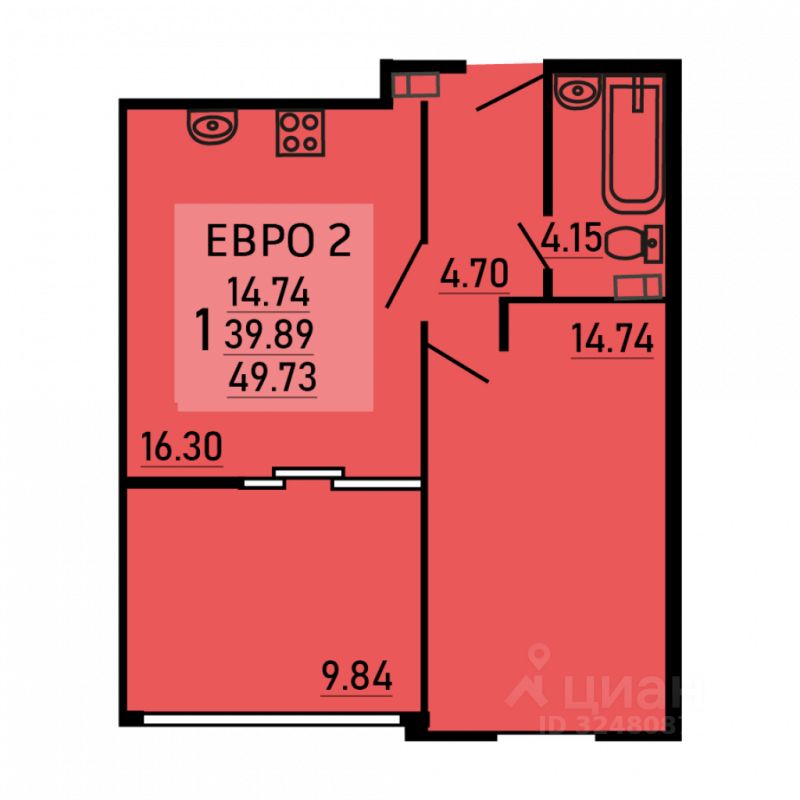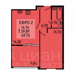 Однокомнатная квартира 49.73 кв.м. от застройщика