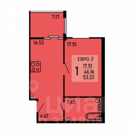 Однокомнатная квартира 53.33 кв.м. от застройщика