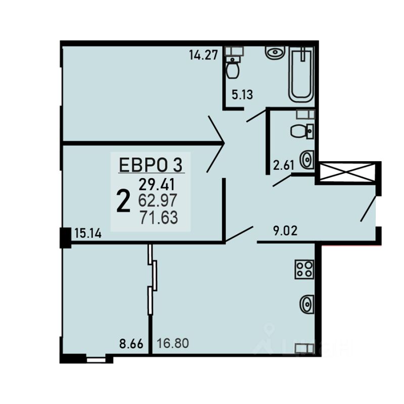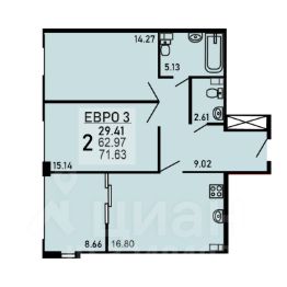 Двухкомнатная квартира 71.63 кв.м. от застройщика