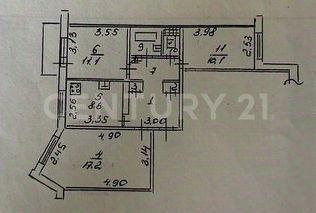 Планировка квартиры удобная и функциональная - комнаты 17 м2, 11 и 10 м2 выходят на разные стороны. Три комнаты "смотрят" на тихий внутренний двор с детской площадкой и вместительной парковкой. Просторная кухня - 9 м2 для всей семьи.