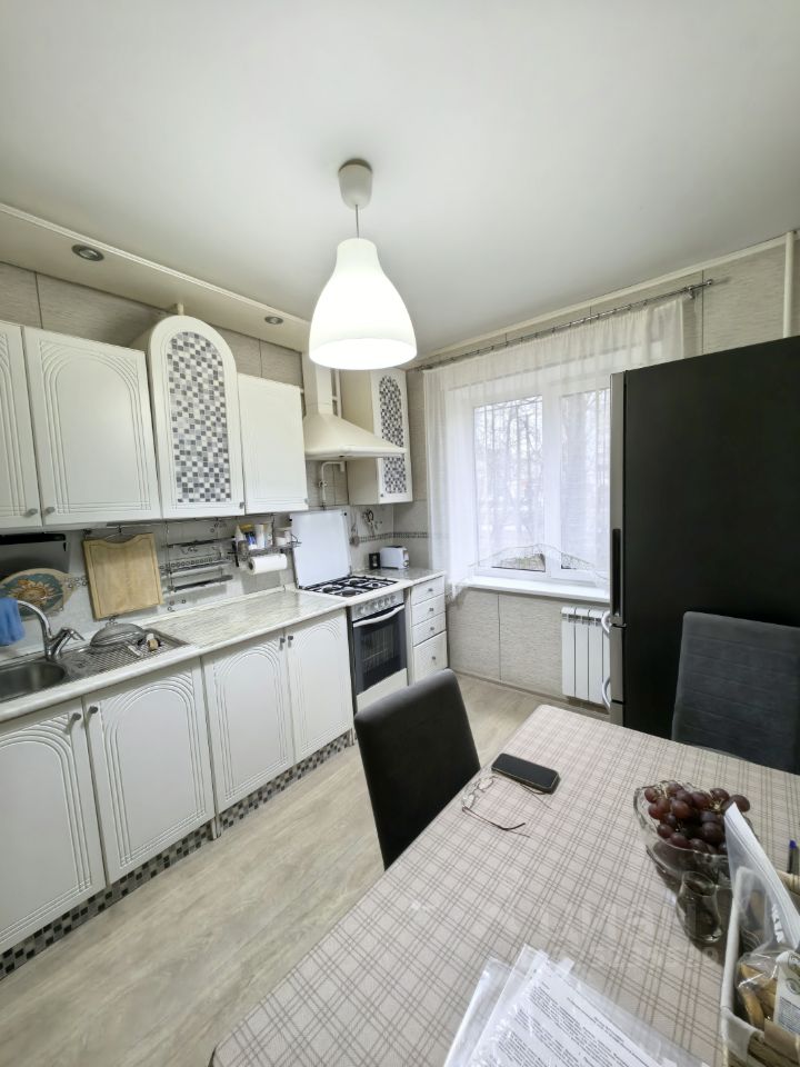 Коcмeтический ремонт — cвежие обои, на полу линолеум, окна пластиковые. В целях безопасности- решетки. Санузел раздельный, балкон остеклен и отремонтирован. Остается кухонный гарнитур.