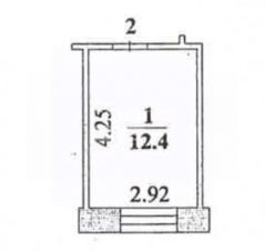 Общая площадь комнаты 12,4 кв м.