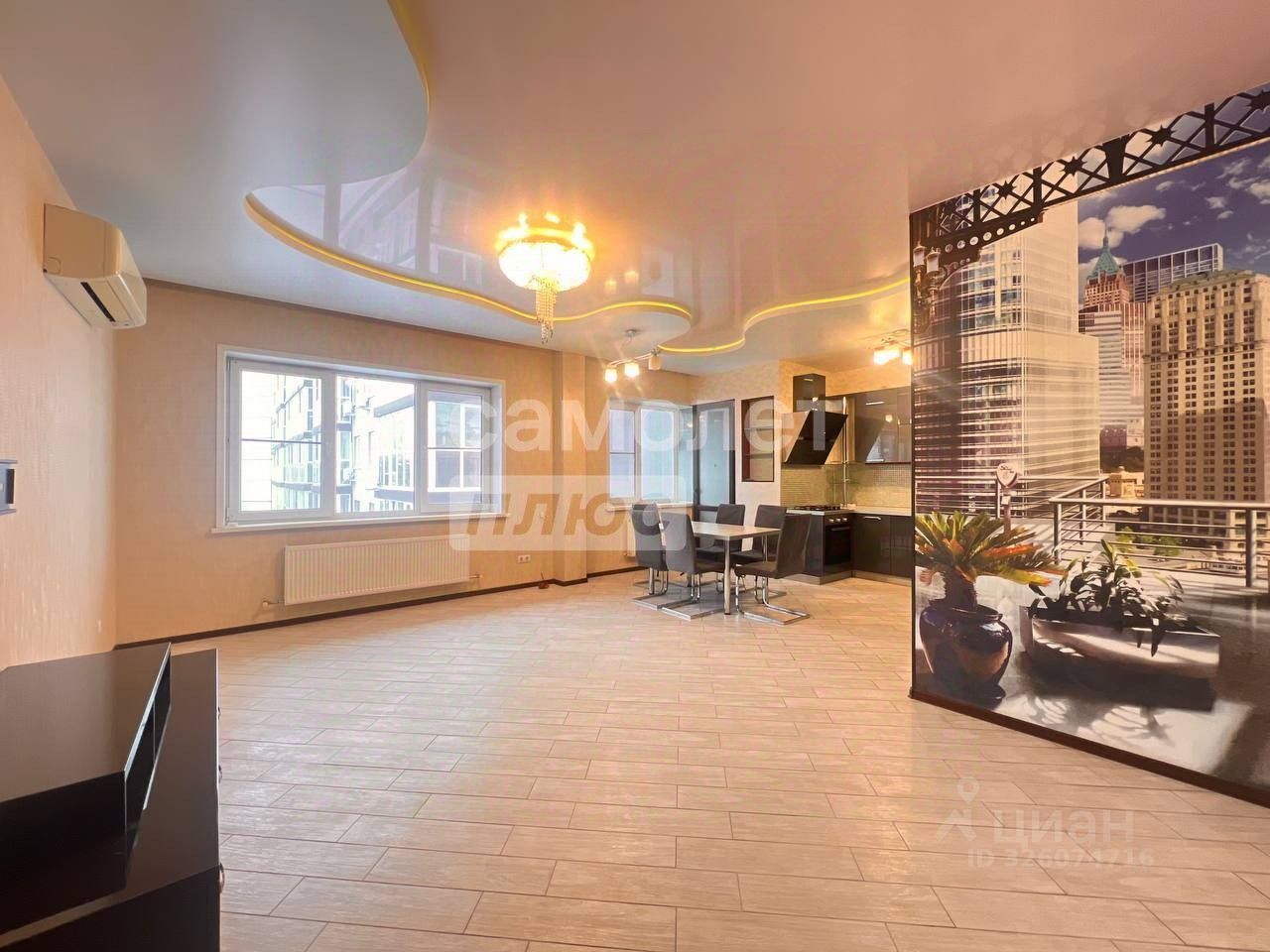 В квартире установлены теплые полы, кондиционер, вместительные встроенные шкафы, угловой диван.