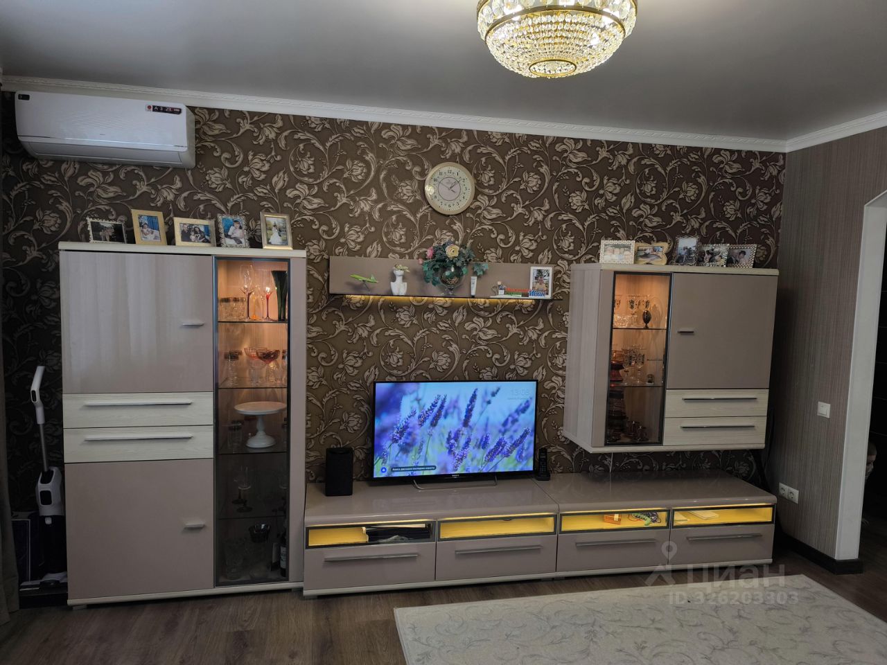Также в гостиной остается стенка и диван, все в отличном состоянии.