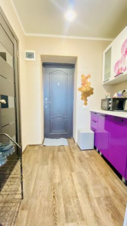 В квартире сделан качественный евроремонт, что позволяет сразу заехать и жить. Студия грамотно спланирована: жилая зона площадью 15 кв. м и кухня 3 кв. м. Санузел совмещенный и полностью оборудован. Окна выходят на улицу, что обеспечивает хорошее естественное освещение.