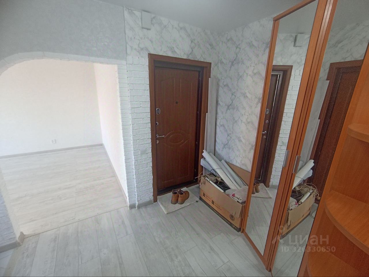 Отделка: Переклеены обои во всех комнатах. На полу в комнатах — качественный ламинат, на кухне — дорогая плитка. В спальне, коридоре и на кухне — натяжные потолки.