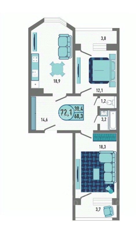 72,1 м²