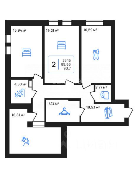 Арт. 129439533 Продаётся 2-комнтаная квартира общей площадью 90,7 мг в жилом комплексе Авторский. Квартира расположена в доме N3 (II очередь), 2 секции, на 8 этаже - что открывает отличный вид на город! 35,15 В квартире 2 жилые комнаты: 19,21 и 15,94 м'. Просторная кухня для семьи 16,59 мг. Два раздельных санузла. Открытая терасса для уединения на свежем воздухе. Есть гардеробная комната.