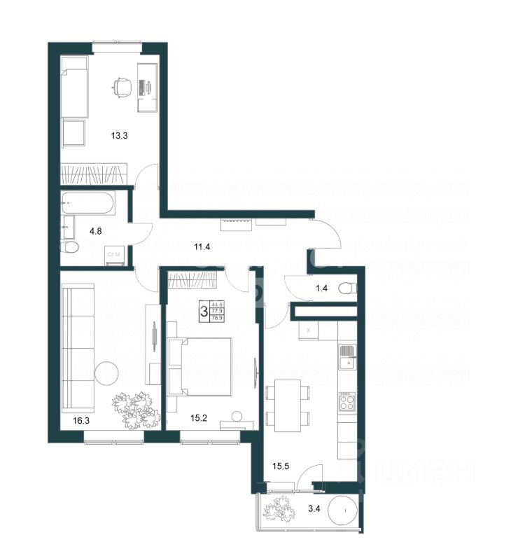 78,9 м²