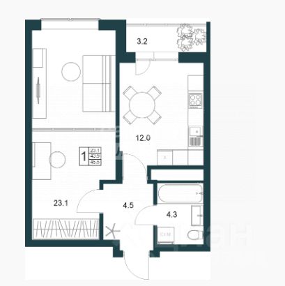 44,8 м²