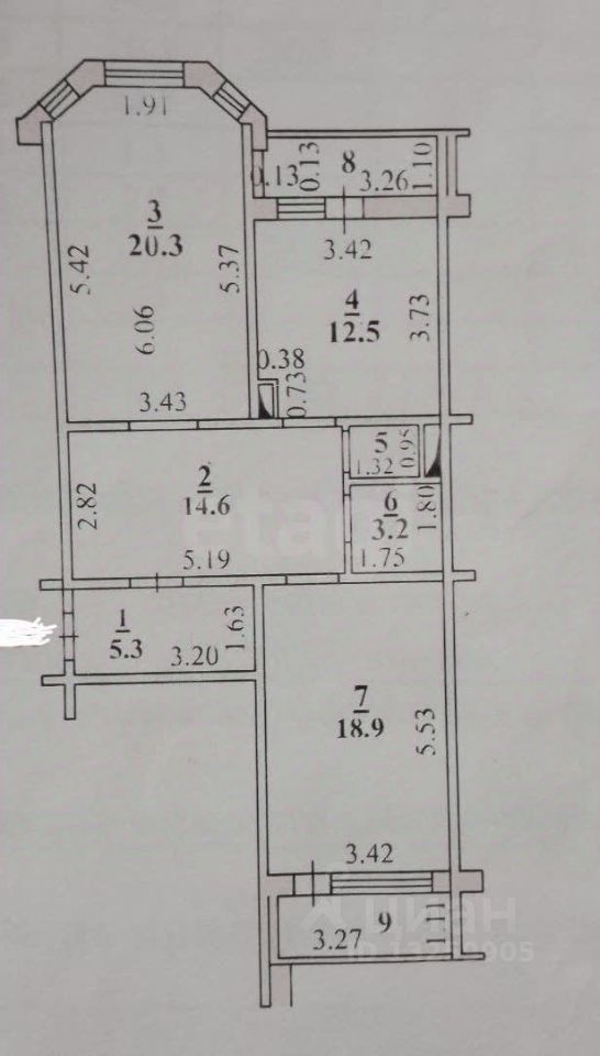 Квартира площадью 83,3 кв.м.