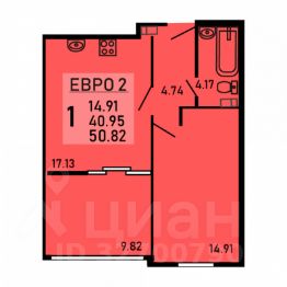 Однокомнатная квартира 50.82 кв.м. от застройщика