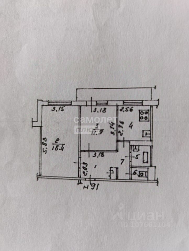 Общая площадь 52 м2. Большой зал 18,4м2; комната 11,9м2 с выходом на балкон (1,8м2); кухня 7,1м2.; санузел раздельный; большая прихожая, очень функциональная со встроенным большим шкафом.