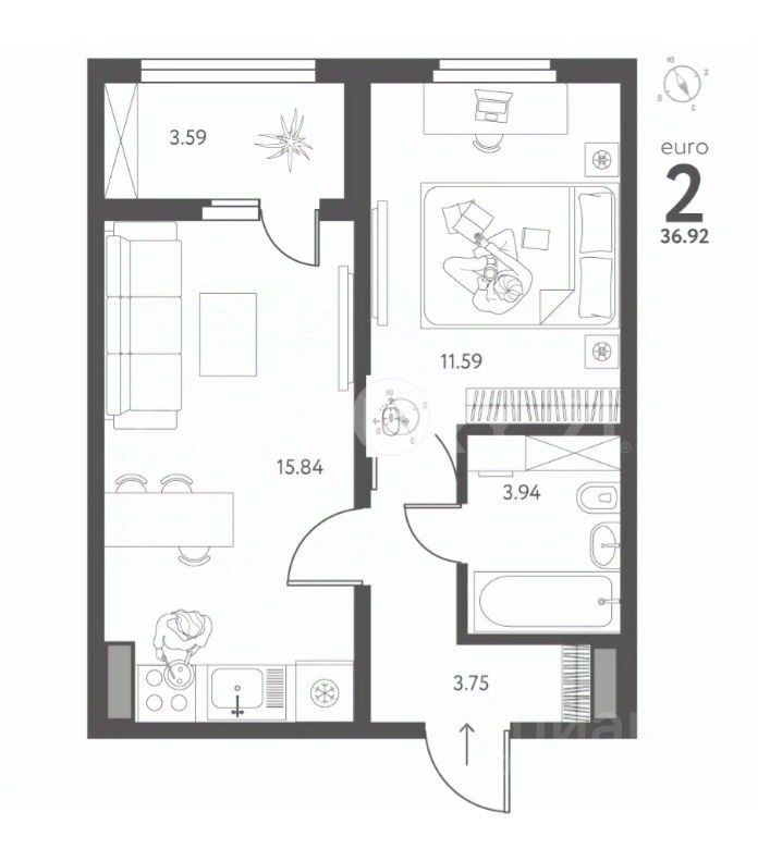 евро планировка (покупаете 2-к а функционал как у 3 комнатной квартиры)