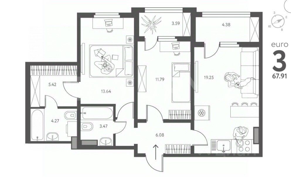 евро планировка (покупаете 2-к а функционал как у 3 комнатной квартиры)