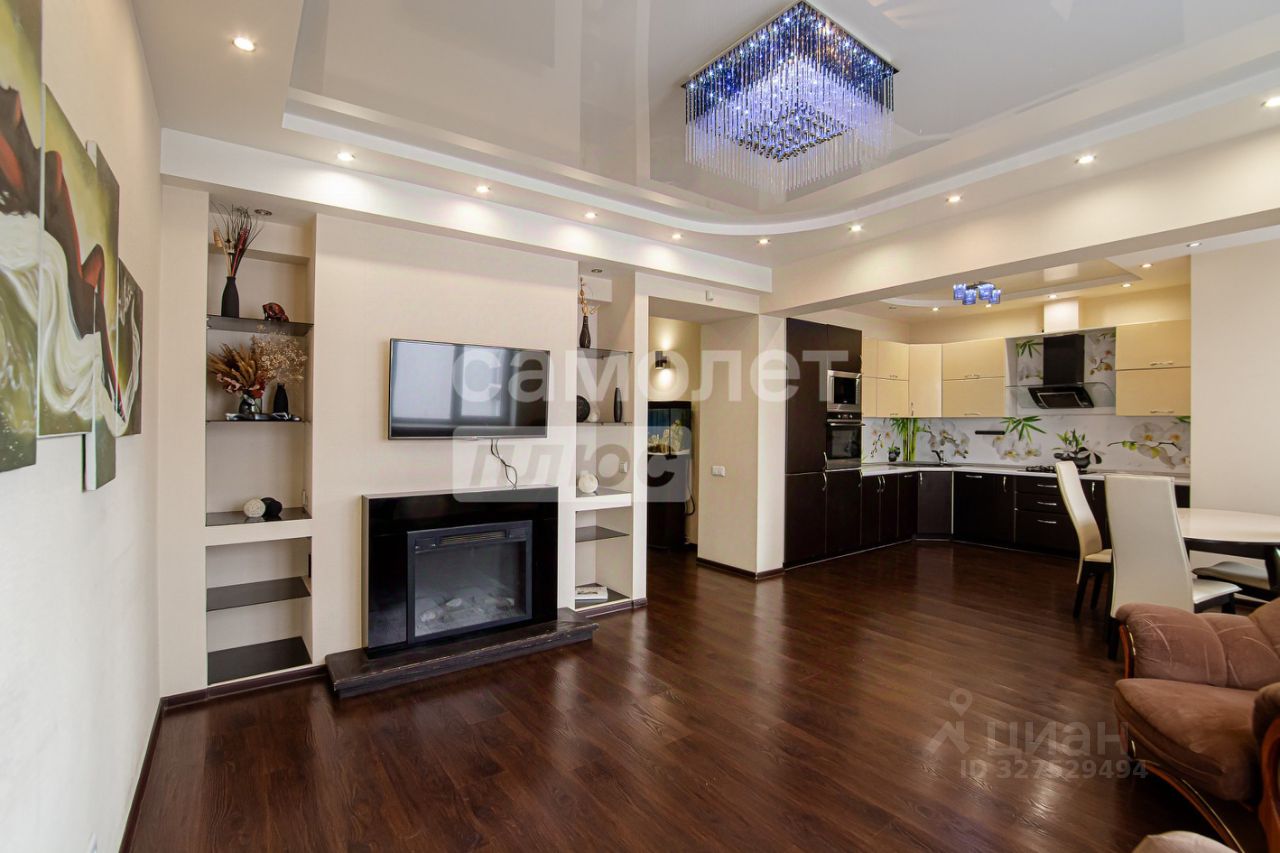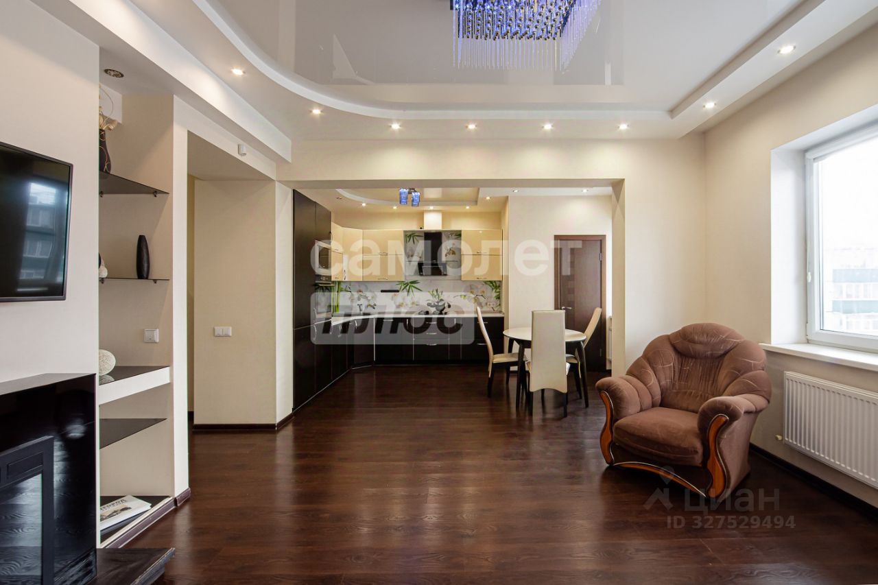 В продаже просторная квартира с европланировкой площадью 99 кв. м., расположенная на 4 этаже 5-этажного монолитно-кирпичного дома 2010 года постройки. В квартире индивидуальное газовое отопление. Высота потолков — 3 метра.
