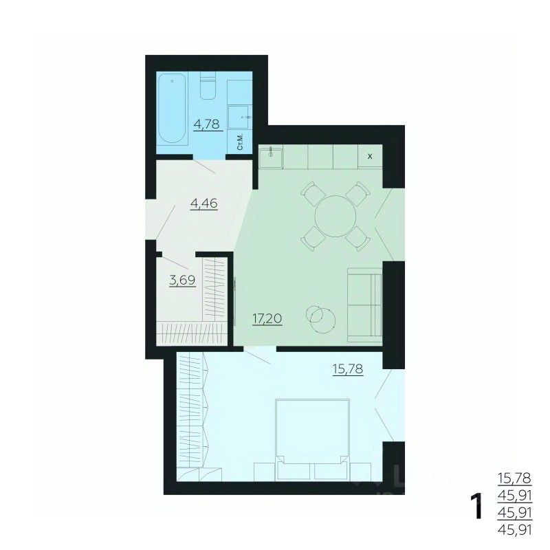 45,91 м²