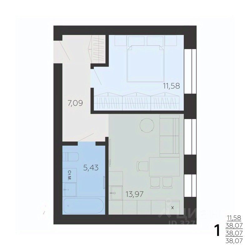 38,07 м²